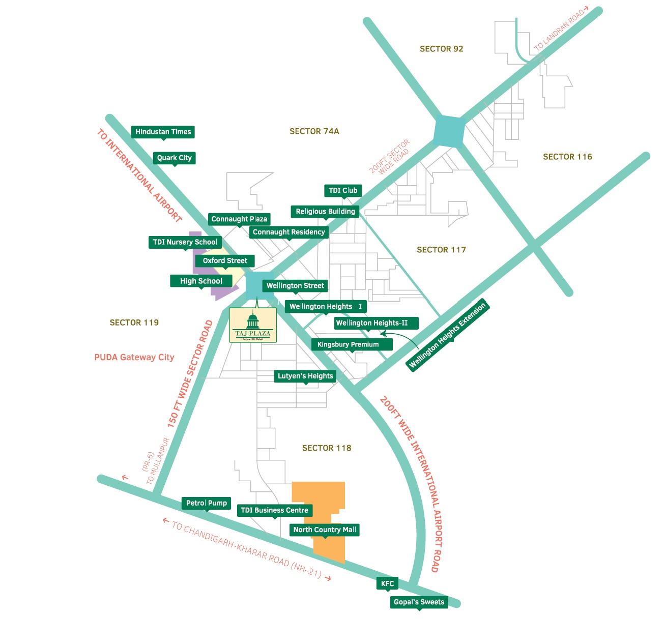 TAJ PLAZA’s location on the 200ft wide International Airport road going through TDI City gives it a contemporary, vivid retail arcade for an absolute shopping ecstasy. Great design philosophy and superior construction makes TAJ PLAZA as one of the most wanted commercial centre in the area.